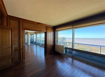 Ingresando por la puerta principal, nos recibe un importante living apaisado, con despojador, escritorio independiente con hermosa vista al mar y un entorno único de amaneceres y atardeceres, dónde cada día es un nuevo paisaje a disfrutar; toilette, un espacioso comedor, toda el área con piso de lapacho. Tanto desde el comedor o desde el living, e independientemente desde la puerta de servicio, donde se genera una muy buena circulación, se accede a la cocina con mucha luz y vista despejada al contrafrente, con gran alacena, mucho lugar de guardado y buenas mesadas. El espacio lavadero posee amplios ventanales que siguen la estética de la cocina y del dormitorio de servicio completo.